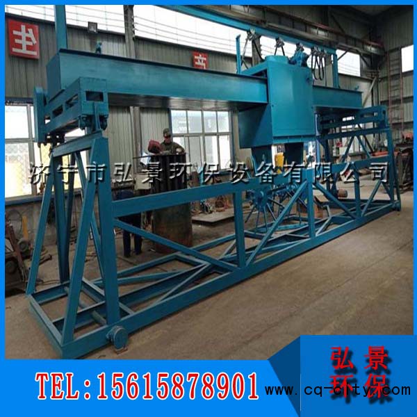 行車翻拋機(jī)由傳動(dòng)裝置、提升裝置、行走裝置、翻堆裝置等主要部件組成。行車式翻拋機(jī)電動(dòng)機(jī)直接將動(dòng)力傳給擺線針輪減速器經(jīng)鏈輪至翻堆滾筒,滾筒上的攪拌槳葉呈螺旋分布,可將發(fā)酵槽內(nèi)的物料翻轉(zhuǎn)攪拌移動(dòng)至0.7-1m遠(yuǎn)的位置,起到翻堆速度快、攪拌均勻的效果,從而達(dá)到物料與空氣的充分接觸,使物料的發(fā)酵效果更好。
