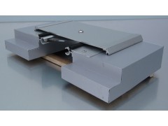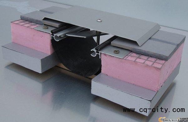 1,金屬蓋板型:由鋁合金基座、鋁合金中心蓋板(或不銹鋼板、黃銅板)、不銹鋼滑桿組成。在蓋板與固定于變形縫兩側的基座之間采用不銹鋼滑桿連接,確保由于主體結構變形引起基座變位時,金屬蓋板仍保持再縫的中心位置。具有與裝修層結合平整的特點。適用于50~500mm縫寬。