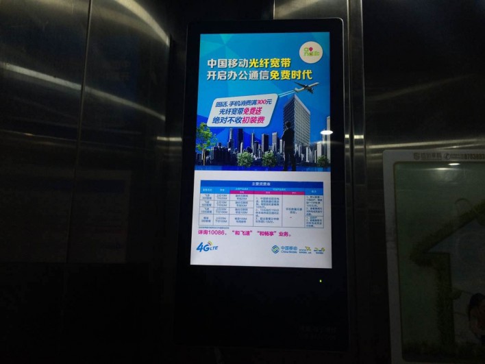 樓宇電梯液晶視頻廣告是安裝在在電梯內的、乘客正對的、左右門套上的19寸以上高清電子顯示設備,是在眼前的、有聲音的、可視頻的框架海報媒體。
